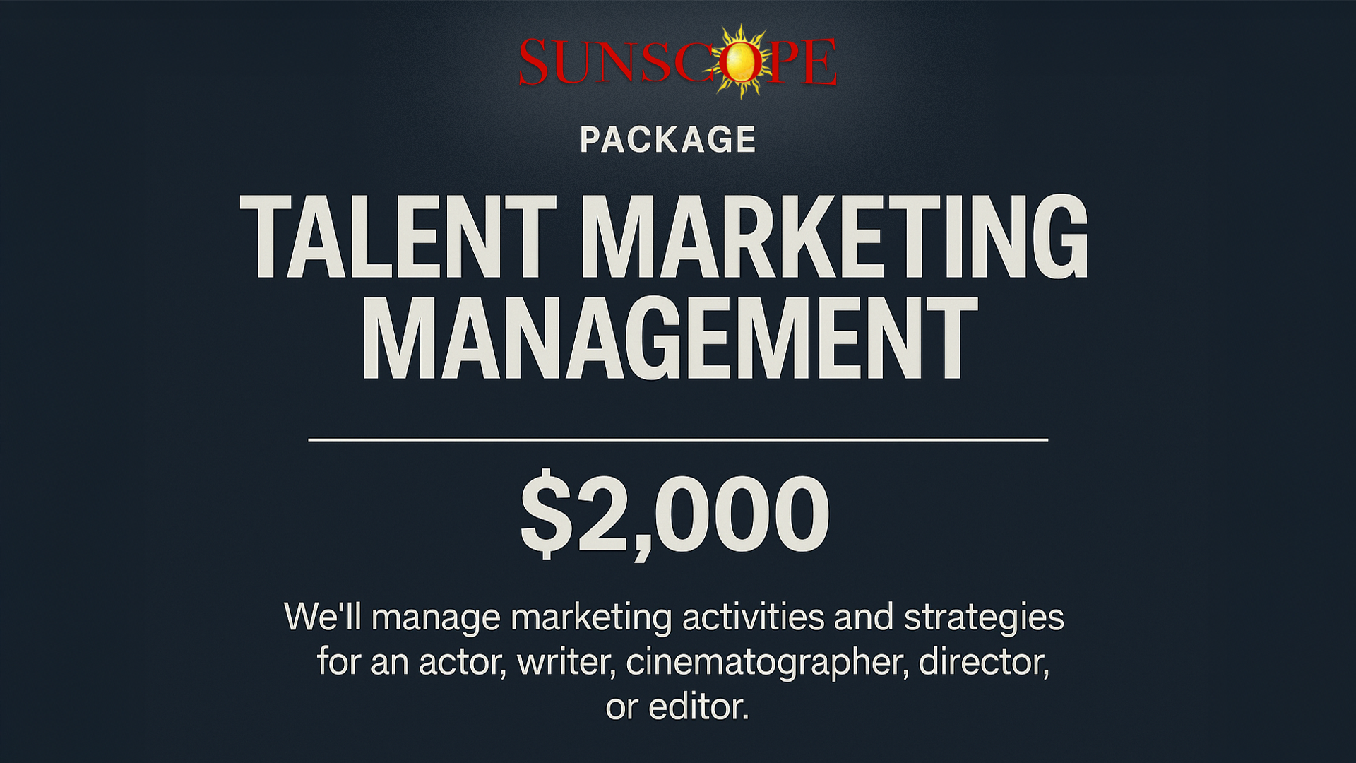 Sunscope Entertainment provides tailored creative services for artists, filmmakers, and brands. From marketing support to full-scale production, each package is designed to deliver professional results at an accessible price. Browse our current offerings below or contact us for custom solutions.